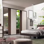 Armadio maxi Amada noce scuro/ specchi fumè + inserti Shanghai/