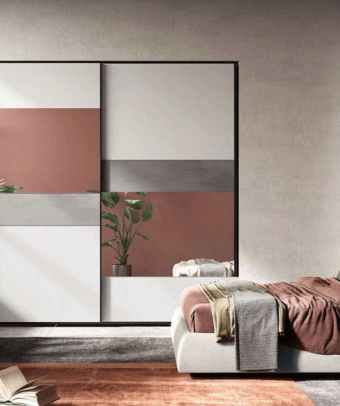 Armadio maxi Segmento Flower cassa ed ante bianco frassinato, specchio riflettente Flower con serigrafia