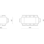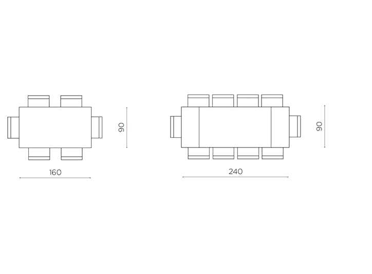 Apertoi con allunghe: Larghezza 240 cm / Profondità 90 cm / Altezza 75 cm